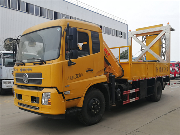 第四,駕駛室后部裝有吊機,增加整車輔助功能,可用于客戶對施工中的重物進行吊運。