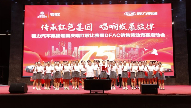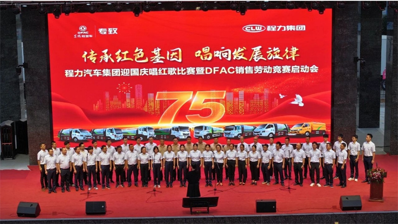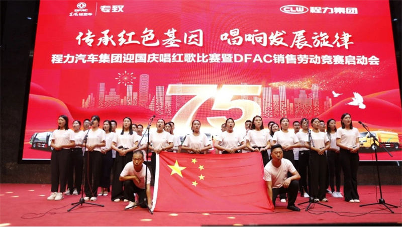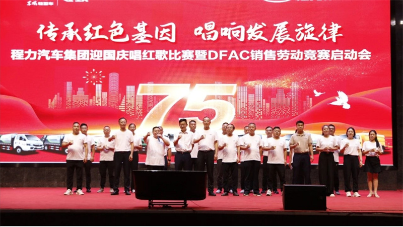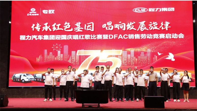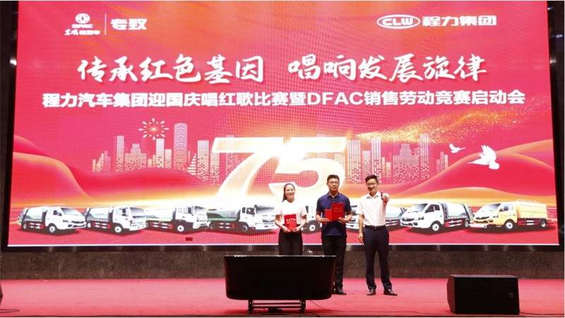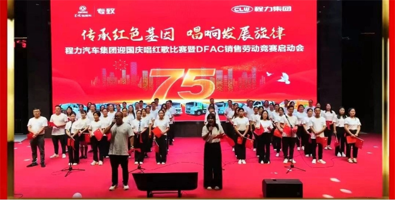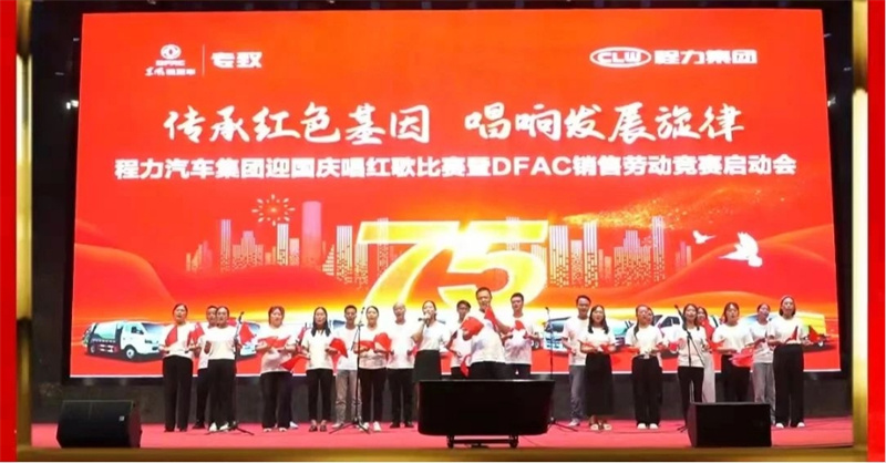 ,9月29日,為慶祝中華人民共和國建國75周年,程力汽車集團攜手東風股份有限公司,在隨州市曾都區程力汽車工業園文化廣場程力大舞臺,隆重舉行迎國慶唱紅歌比賽暨DFAC銷售勞動競賽啟動會,