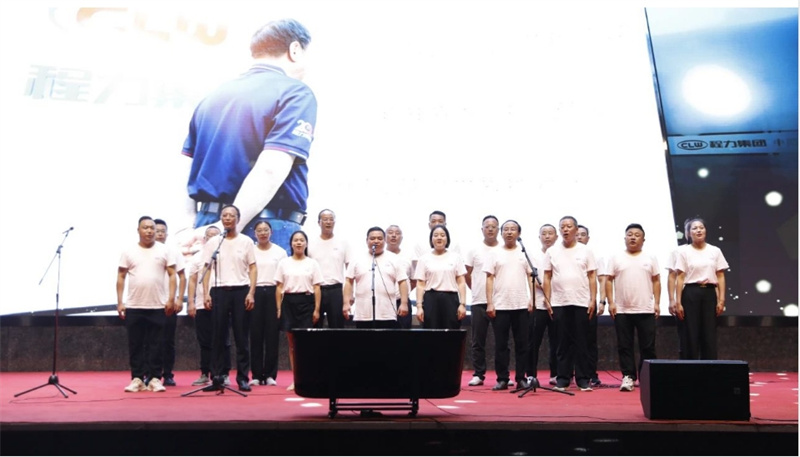 程力汽車集團中高層領導上臺集體合唱《程力之歌》,分享與祖國共榮光的豪邁與榮耀。