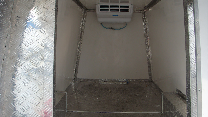 二,保溫箱體 湖北程力冷藏車的質量好不好一般因素是看箱體的質量,好的冷藏車箱體不漏熱,質量輕,箱體結實不變形起泡。湖北程力公司自主研發的冷藏車第五代產品融合:"無縫結合箱體技術”,“全自動恒溫系統”,“全方位冷藏車監控系統”,“全球冷凍數據回饋技術”,箱體填充除了保留傳統的“高密度聚氨酯”外,新增“航空材質高密度玻璃纖維”。廂板為三明治式結構,內外蒙皮,中間輕鋼龍骨架及8厘米高密度聚氨酯保溫材料,采用國際先進的大型真空負壓機一次性負壓成型,表面光潔平整,強度高,整體質量輕,保溫性能良好,無滲漏。箱體內外蒙皮可根據用戶的實際需求選用玻璃鋼板,鋁合金板,彩鋼板,不銹鋼板等材質制作。用戶也可以根據運輸介質的不同選裝滑道,肉鉤,通風槽,側開門等。