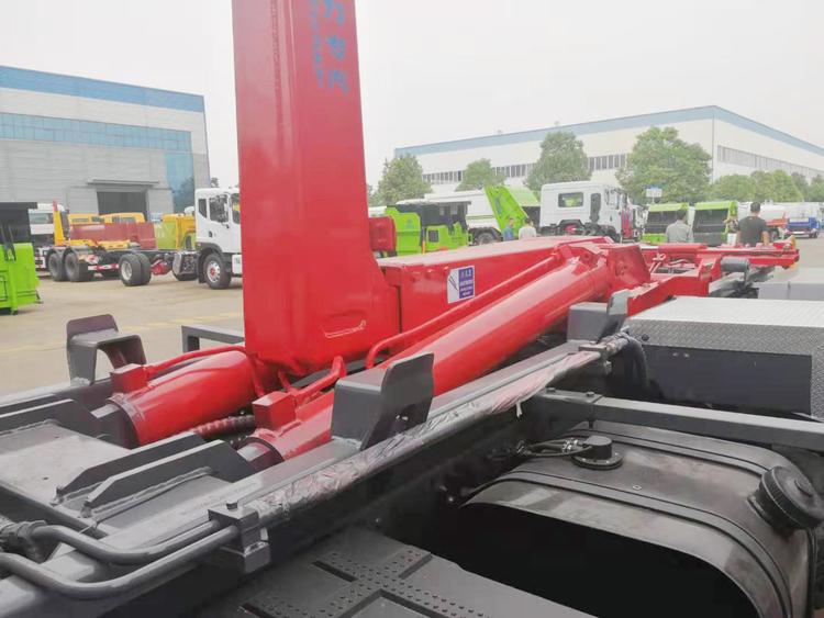 東風多利卡D9勾臂式垃圾車,承載重量12-16噸(垃圾加箱體)。可配套容積8-12方移動壓縮垃圾站或15-18方勾臂垃圾箱。國六排放,柴油發動機。伸縮式套臂,提升重量12噸、16噸可選,加強型副梁,鑄鋼尾托輪,電控+手動操控,帶鎖緊架、鎖緊油缸。液壓完成上箱+下箱+鎖緊+自卸等作業。尾部帶液壓后支腿。 帶自動裝卸垃圾箱功能,配10-16立方鉤臂垃圾箱或者移動壓縮垃圾站。一車可以配多個垃圾廂,帶自卸功能。 | 湖北程力國六D9勾臂垃圾車(車廂可卸式垃圾車)程力威牌CLW5180ZXXE6型車廂可卸式垃圾車圖片價格: