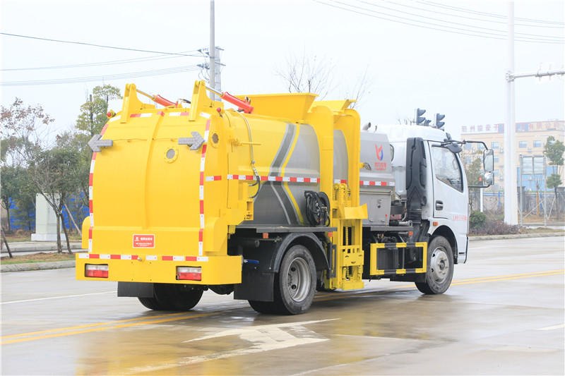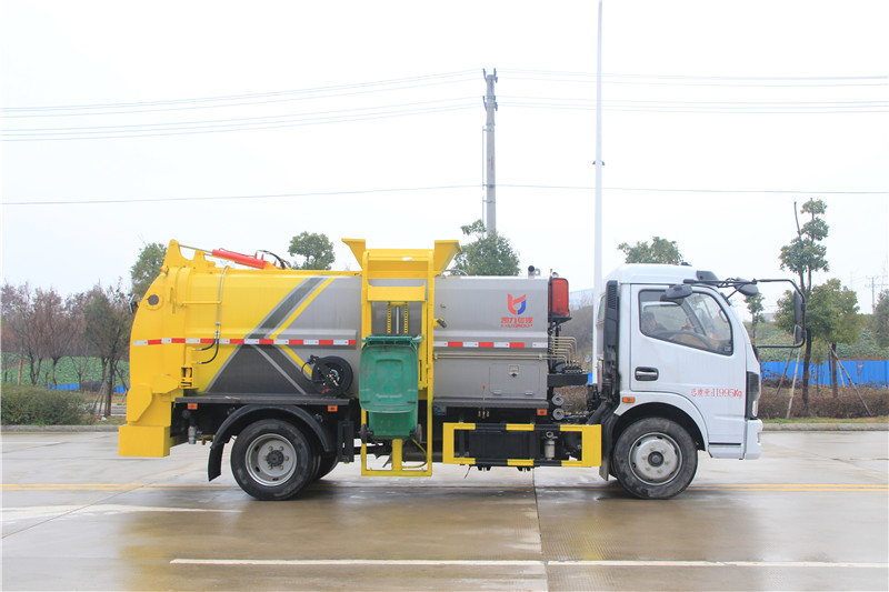 湖北程力國六東風大多利卡8方餐廚垃圾車(廂式方罐)程力威牌CLW5121TCA6型餐廚垃圾車CLW5120TCAEDP型餐廚垃圾車CLW5090TCA6型餐廚垃圾車廠家配置: 湖北程力國六東風大多利卡8方餐廚垃圾車(廂式方罐)底盤配置:采用東風原裝EQ1095SJ8CD2底盤,玉柴140馬力 (可選朝柴170、云內150馬力),7.50R16鋼絲胎,氣剎,6檔變速箱 ,帶ABS,原裝空調,電動玻璃,中控鎖。 改裝標配:(1)弧形箱體,箱體材質為4mm。(2)合肥皖液油泵,江蘇多路閥,國產液壓油缸。(3)推鏟卸料(不帶舉升功能),具有干濕分離功能。液壓后蓋,后蓋帶密封條。(4)后門液壓鎖緊。(5)拉桿式提升機,掛240L標準塑料垃圾桶。進料口蓋液壓開關。(6)駕駛室內集中電控(提升機外部手動控制),后門鎖緊與后蓋開關的操作具有防誤操作。(7)箱體帶清洗裝置(液壓馬達帶動高壓泵、帶水箱) |