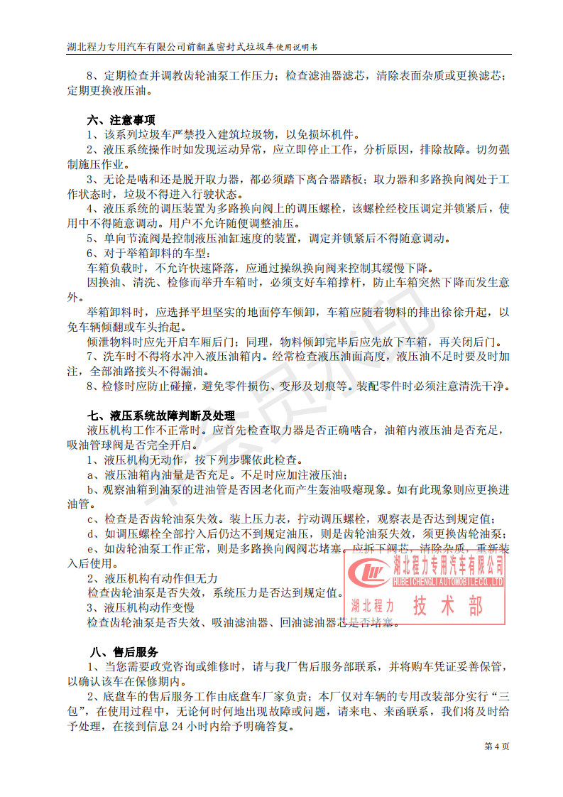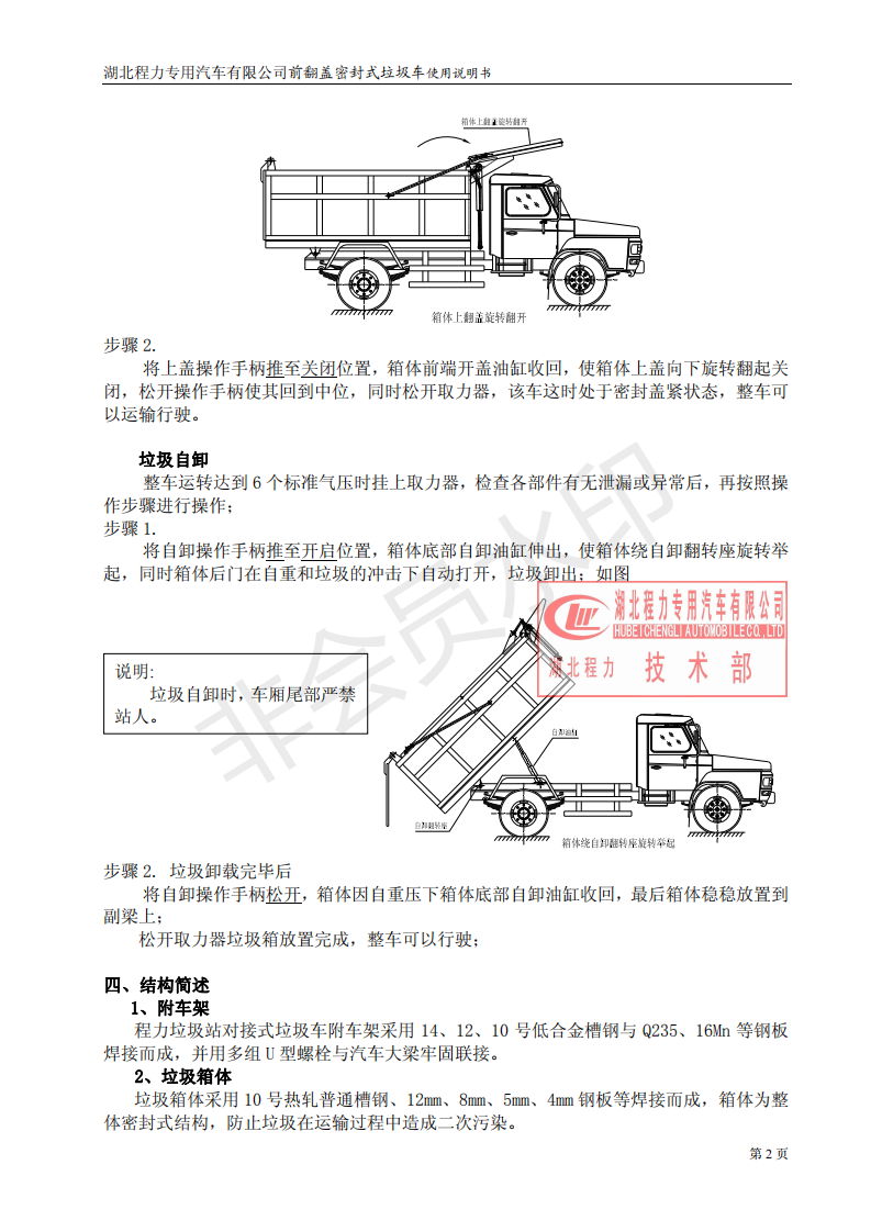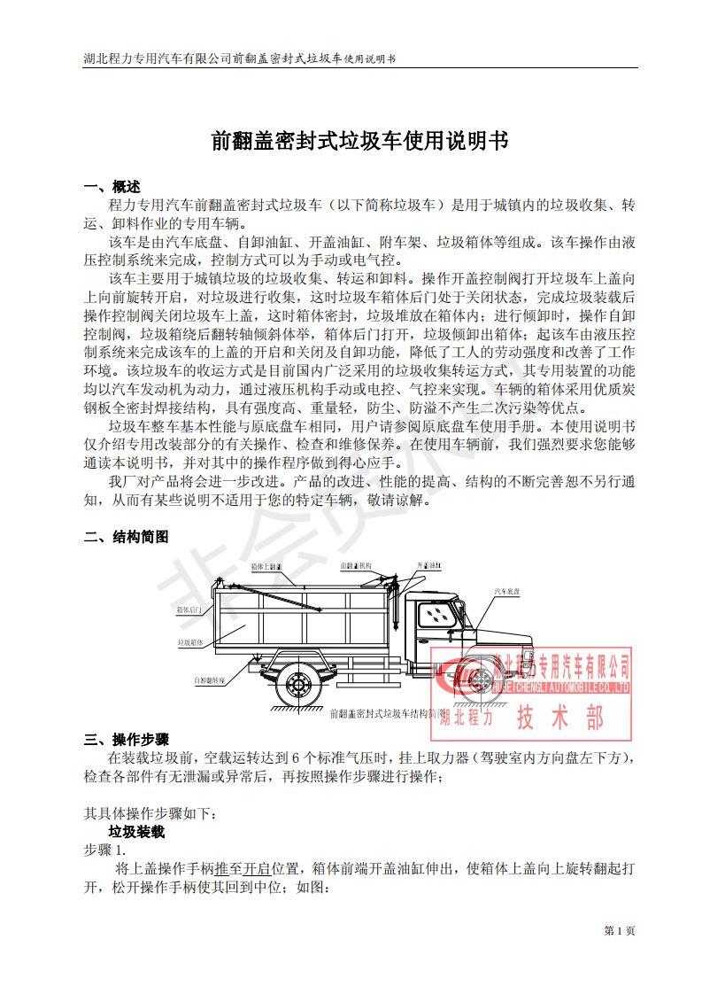 湖北程力密封自卸垃圾車使用維護說明書(程力自卸垃圾車如何使用