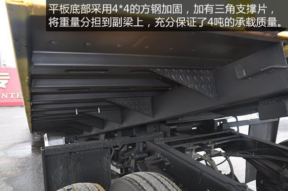 平板底部采用4*4的方鋼加固,加有三角支撐片,將重量分擔到副梁上,充分保證了4噸的承載質量。