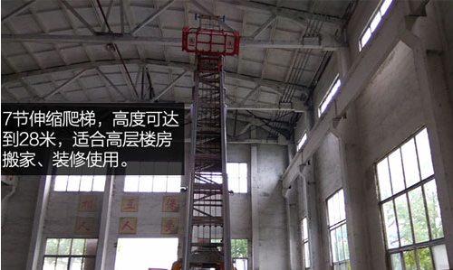 7節伸縮爬梯,高度可達到28米,適合高層樓房搬家、裝修使用。爬梯頂部安裝滑輪,適合貼墻升高時使用。云梯采用韓國進口技術,部分部件采用韓國原廠整裝進口!包括液壓系統,油路管件都是韓國原廠提供。
