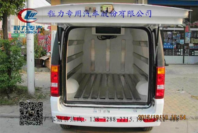 2.上裝配置:冷藏廂內部有效容積3.6立方,廂體蒙皮內玻璃鋼,外不銹鋼,花紋鋁底板,8cm聚氨酯保溫,不銹鋼門鎖件,配后雙開門,安裝-18度制冷機組可選。