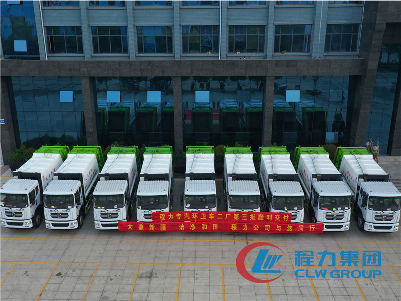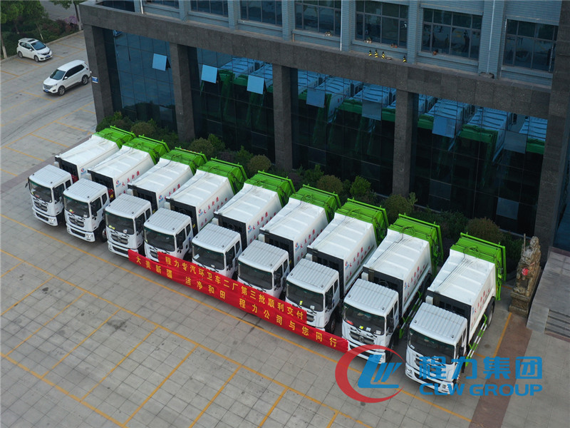湖北程力批量環(huán)衛(wèi)垃圾車壓縮垃圾車發(fā)車圖片