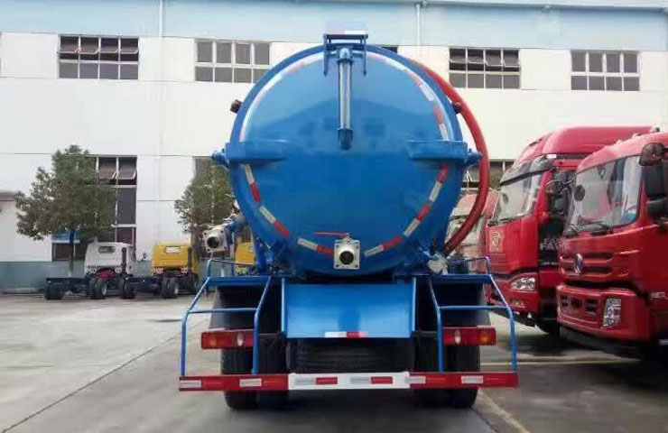 5】程力吸污車具有液壓舉升自卸功能,便于將各種污泥傾倒干凈。而且后罐門可以液壓自動開啟,便于清理罐體內的沉積物、凝固物及對罐體內部進行維修、保養。